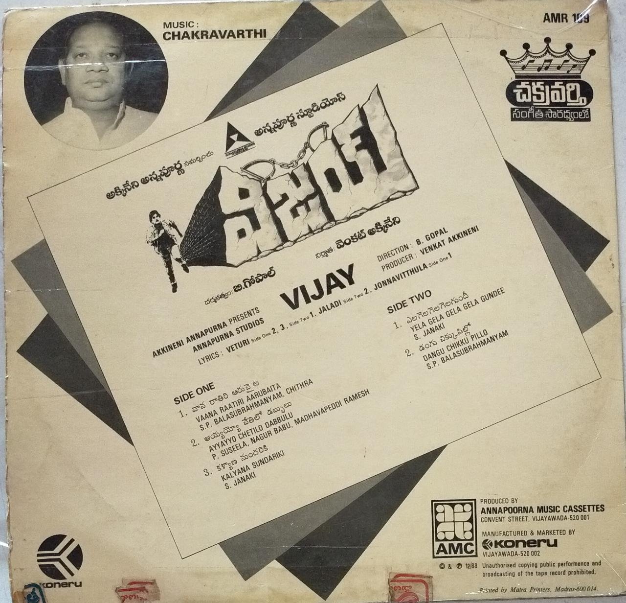 Vijay Telugu Film LP Vinyl Record by Chakravarthy
