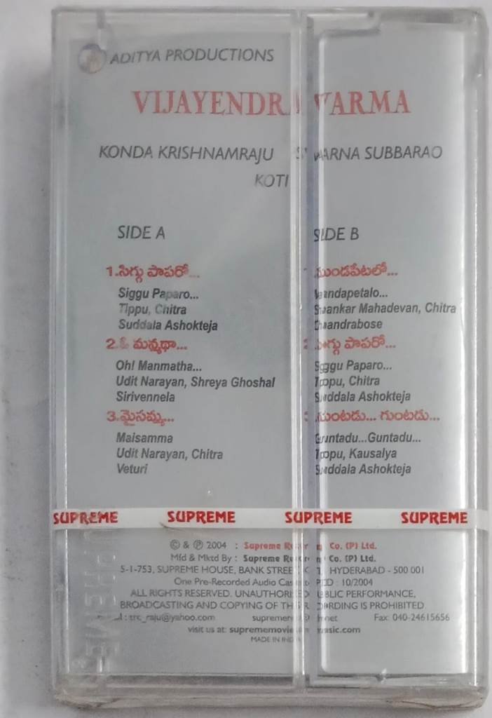 Vijayendra Varma Telugu Film songs Audio Cassette (sealed pack)