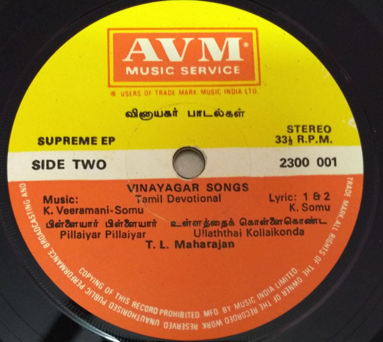 Vinayagar Songs Tamil EP Vinyl Record by K Veeramani