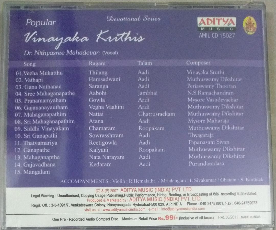 Vinayaka Krithis Classical Audio CD by Nithayasree Mahadevan