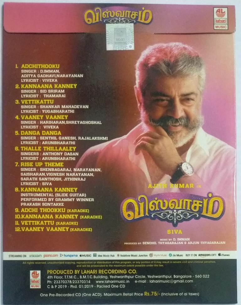 Viswasam Tamil Film Audio CD by D Imman