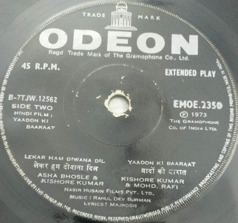 Yaadon Ki Baaraat Hindi Film EP Vinyl Record by R D Burman 2350