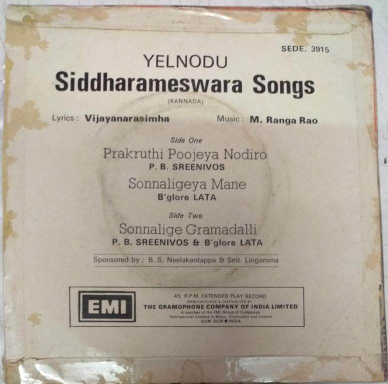 Yelnodu Siddharameswara Songs Kannada devotional EP VInyl Record by Ranga Rao