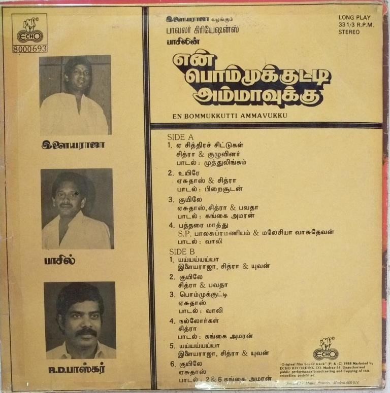 Yen Bommukkutti Ammavuku Tamil Film LP Vinyl Record by Ilayaraja