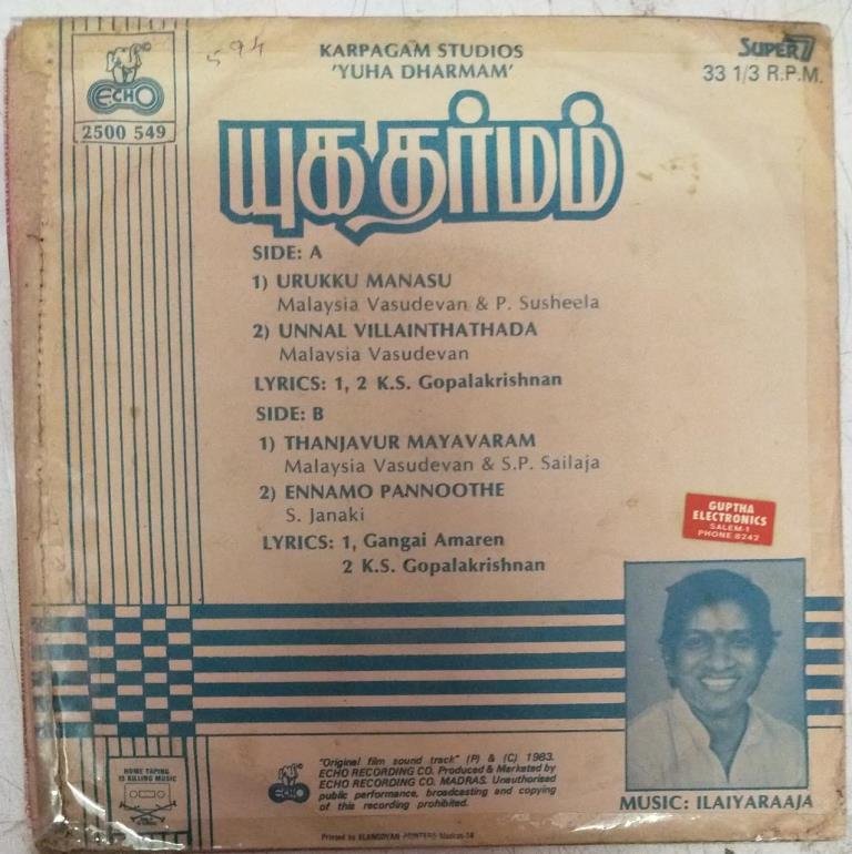 Yuha Dharmam Tamil film EP Vinyl Record by Ilayaraja